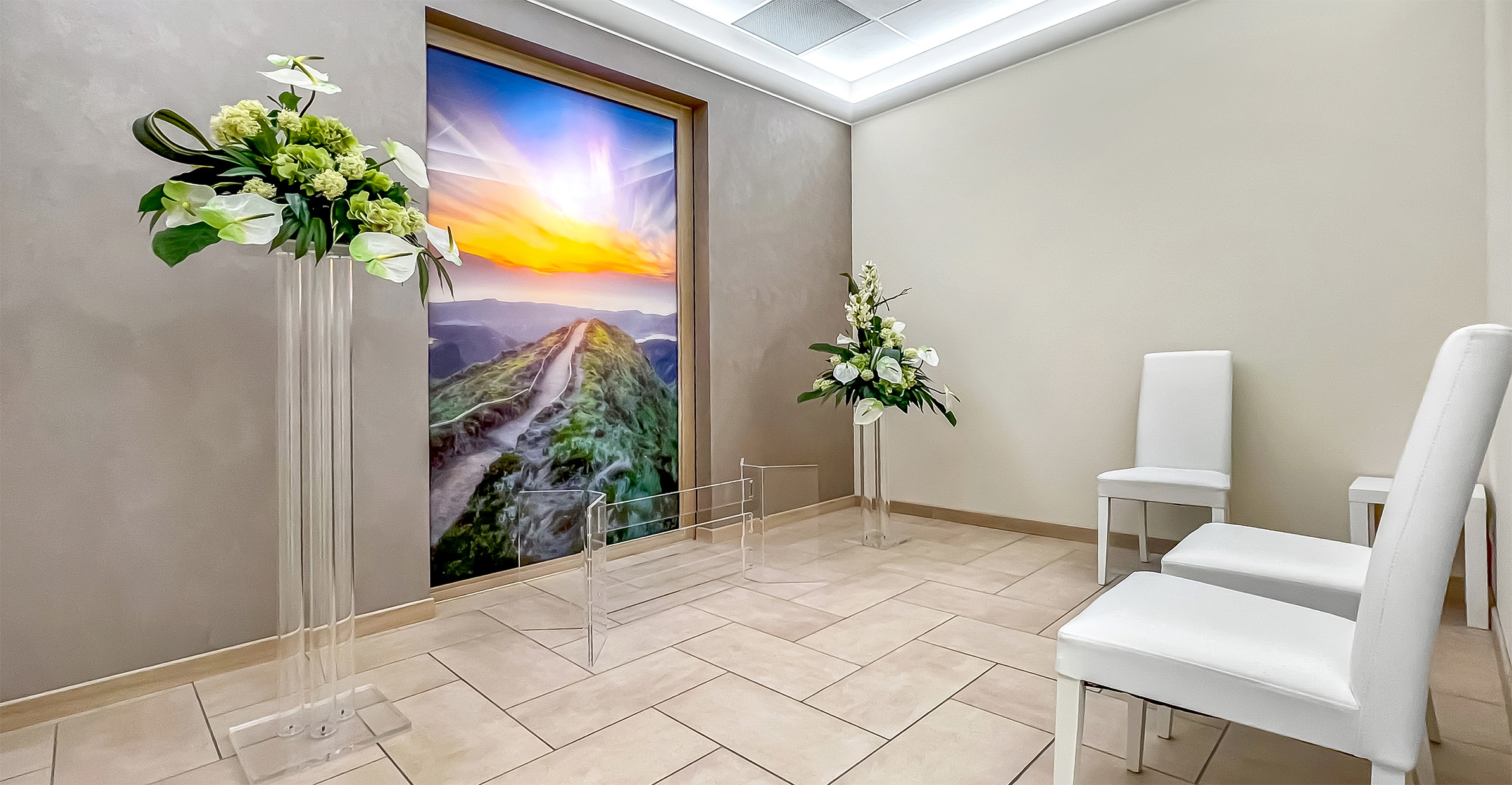 Un luogo confortevole, sobrio e caldo accoglie le famiglie permettendo di ricevere le visite di amici e parenti nelle salette con sfondi religiosi e naturalistici, con il nostro continuo supporto discreto e competente. Un angolo di servizio garantisce ristoro a chi vuole restare per diverse ore nella nostra struttura.